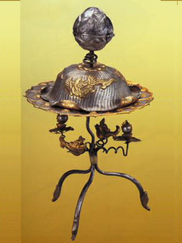 蕾鈕摩羯紋三足架銀鹽臺——唐煮茶過程中需要加入鹽