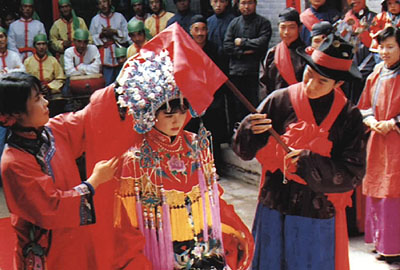 但大禮中,不管家境如何,茶葉、龍鳳餅、棗、花生等一些象征性禮品,也是不可缺少的。茶葉當(dāng)然還帶有“從一”的含義。女方收到男家的彩禮以后,隨即也要送嫁妝和陪奩,經(jīng)過這些程序以后,才算完聘。女方的嫁妝也隨家庭經(jīng)濟(jì)條件而有多寡,但不管怎樣,一對(duì)茶葉罐和梳妝盒是省不掉的。