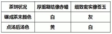 關(guān)于鑒賞,宋徽宗趙佶主要是通過(guò)制作好的茶餅外形及其在點(diǎn)茶時(shí)的茶湯顏色來(lái)進(jìn)行。具體鑒賞方法通過(guò)下面三個(gè)表格的對(duì)比我們便可一目了然,掌握如何從關(guān)鍵之處鑒別、明白茶葉的各項(xiàng)品質(zhì)。