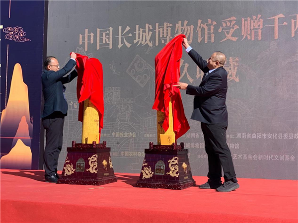 安化縣人民政府向長城博物館贈送由安化縣出品的《萬里長城千兩茶》