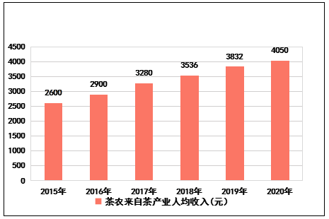 茶葉作為精準扶貧的重要產(chǎn)業(yè)之一,在云南脫貧攻堅戰(zhàn)中發(fā)揮了重要作用,全省茶產(chǎn)業(yè)涉及茶農(nóng)600多萬人,“十三五”期間,茶農(nóng)來自茶產(chǎn)業(yè)人均收入年均增長率達9.2%,2020年,人均茶產(chǎn)業(yè)收入達4050元,人均比上年增收218元,增5.7%。比2015年增加1450元,增幅達56%,茶產(chǎn)業(yè)為精準脫貧做出了積極貢獻。