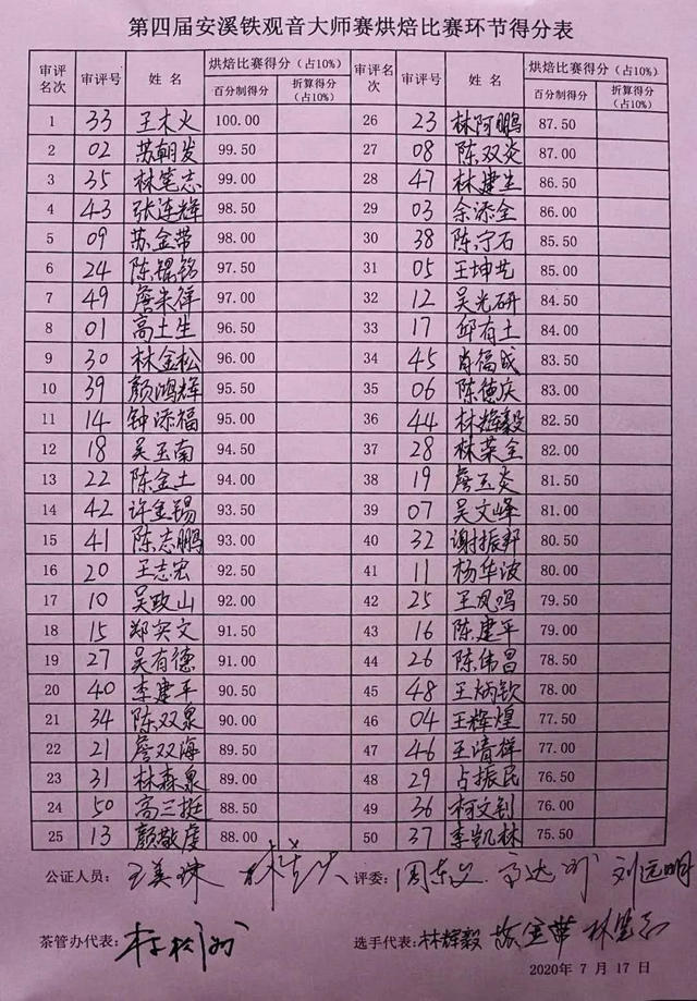 安溪鐵觀音大師賽來了!50位選手烘焙結(jié)果出爐!